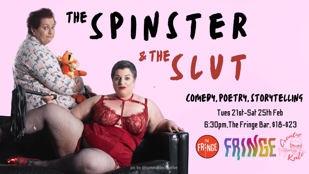 Kristeene is a geriatric spinster who likes an early night. Kate is a middle-aged slut who likes it every night. Together they explore their polar opposite experiences – meandering their way through this conundrum of existence via comedy, poetry, and storytelling. Sexy, sultry, saucy meets cuddly, comfy, cosy.